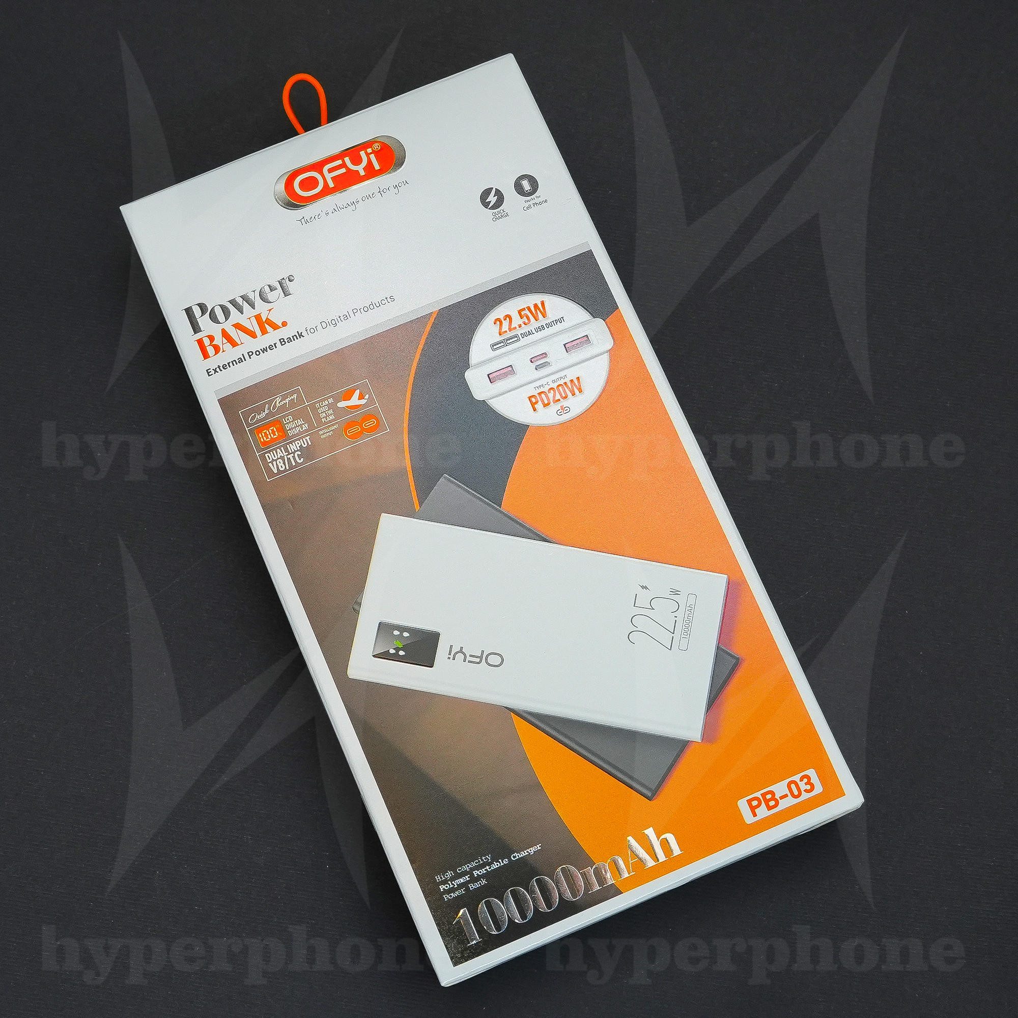 پاوربانک 10000 میلی آمپر ofyi مدل pb03 مناسب استفادهی روزمره بوده و امکان حمل در هواپیما را نیز دارد. این محصول شرکت اوفی میزان شارژ را به کمک نمایشگر LED نشان میدهد و حداکثر توان عبوری از آن به 22.5 وات میرسد که از نوع فست شارژ است.